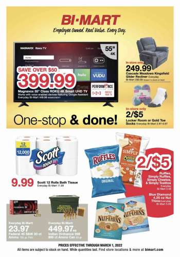 Bi-Mart is an employee owned business thats been around forever. I love shopping here friendly employees great buys. Whether its the everyday shopping list a home improvement project automotive maintenance or outfitting for the great.